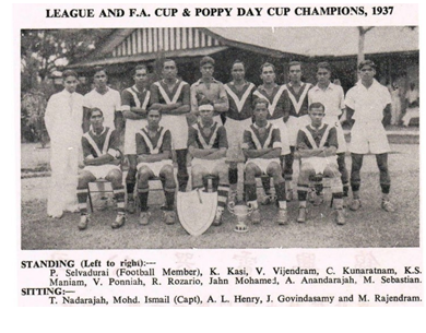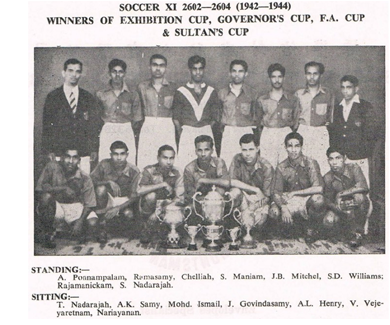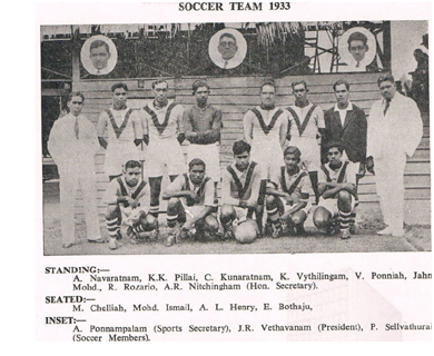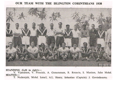 Being triple champions, our football team was considered one of the strongest combinations in Malaya and it was indeed an honour for our Association when we were pitted to play against the Islington Corinthians who were the first Amateur English Football team to tour this part of the world. The game ended in a 1-1 draw. It was indeed a creditable achievement for a young team.