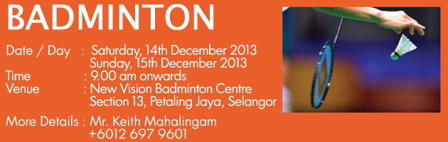 • Mr. V. Mahalingam (Badminton Coordinator) � 012 234 2637